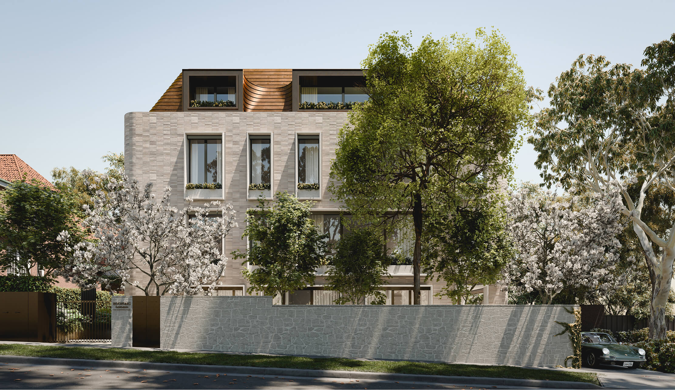 The planting strategy creates a quiet dialogue with the neighbouring Kooyong Gardens, echoing its natural rhythm and extending the experience of greenery. Views, textures, and seasonal changes are designed to feel continuous across the boundary.